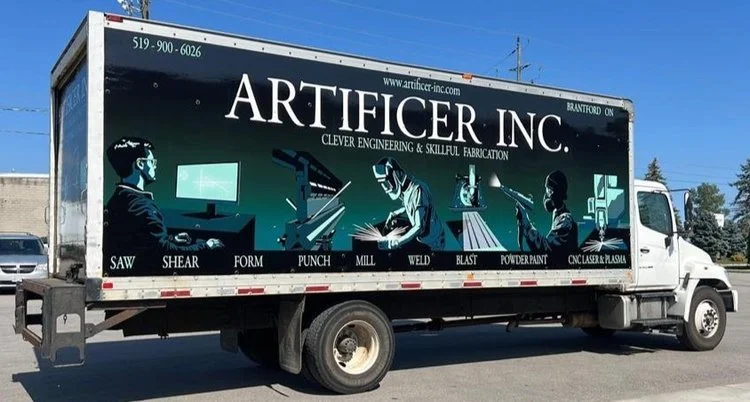 This project was executed from initial artwork through to final print and installation. I ensured the typography and color palette aligned with Artificer's established branding. The result is a striking, brand-cohesive wrap that functions as a moving advertisement and reinforces the company’s strengths in craftsmanship and industrial expertise.